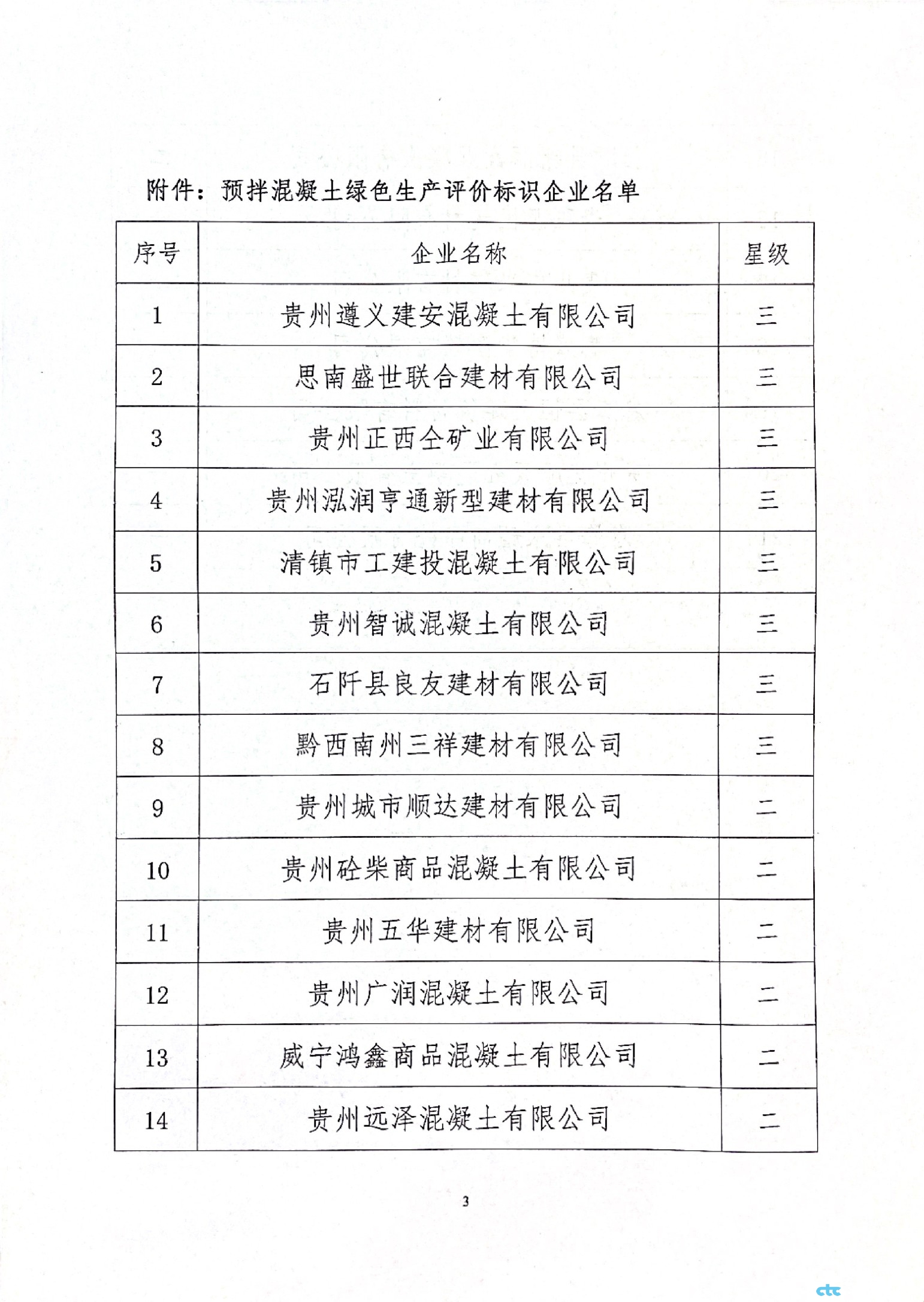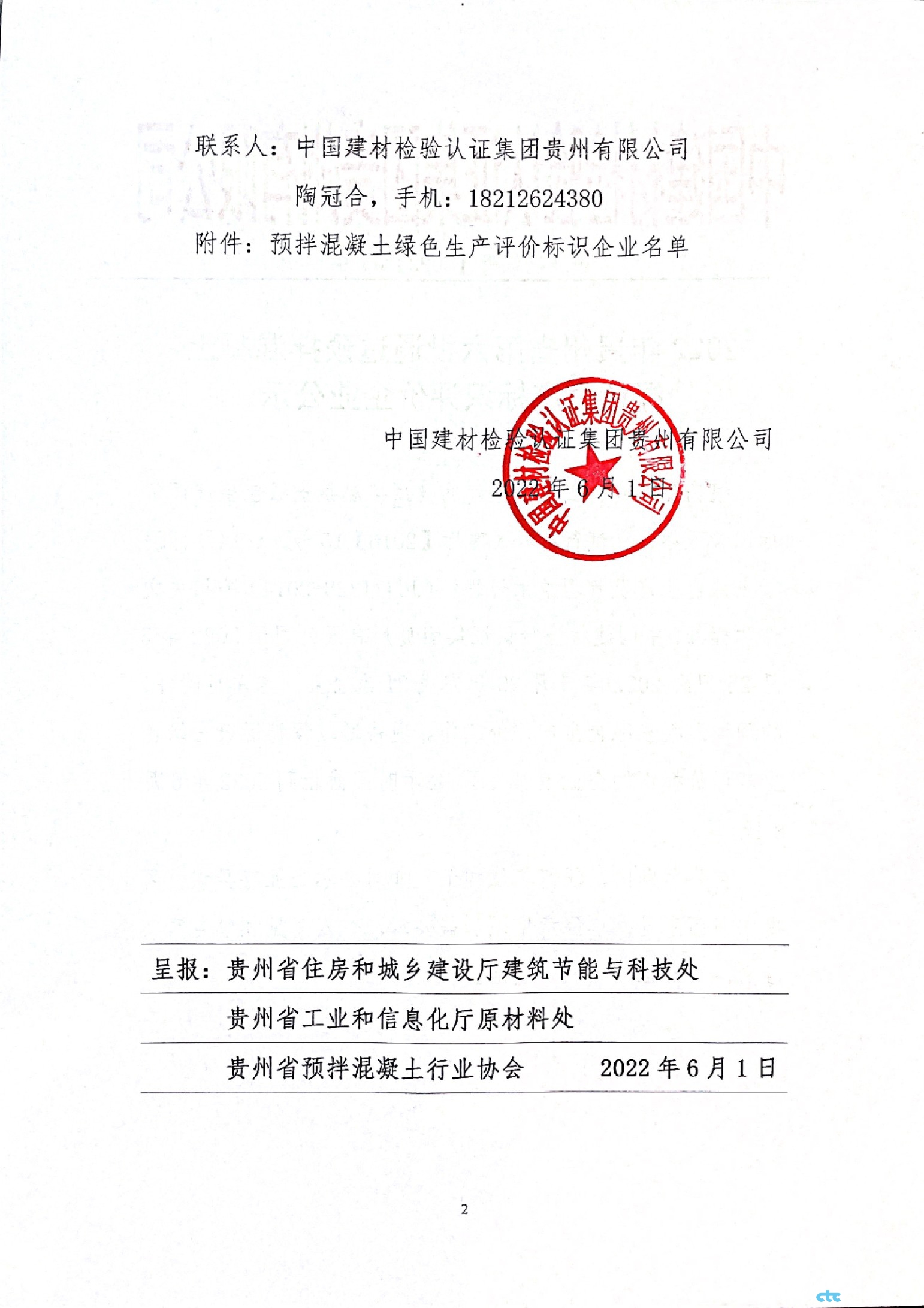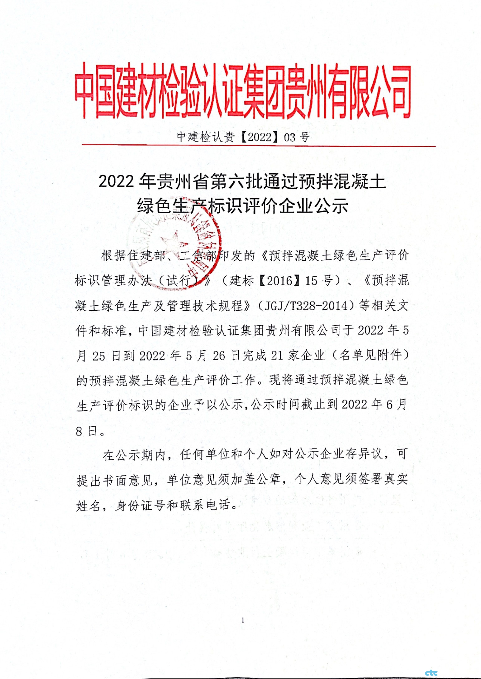 2022年貴州省第六批通過預拌混凝土綠色生產標識評價企業(yè)公示