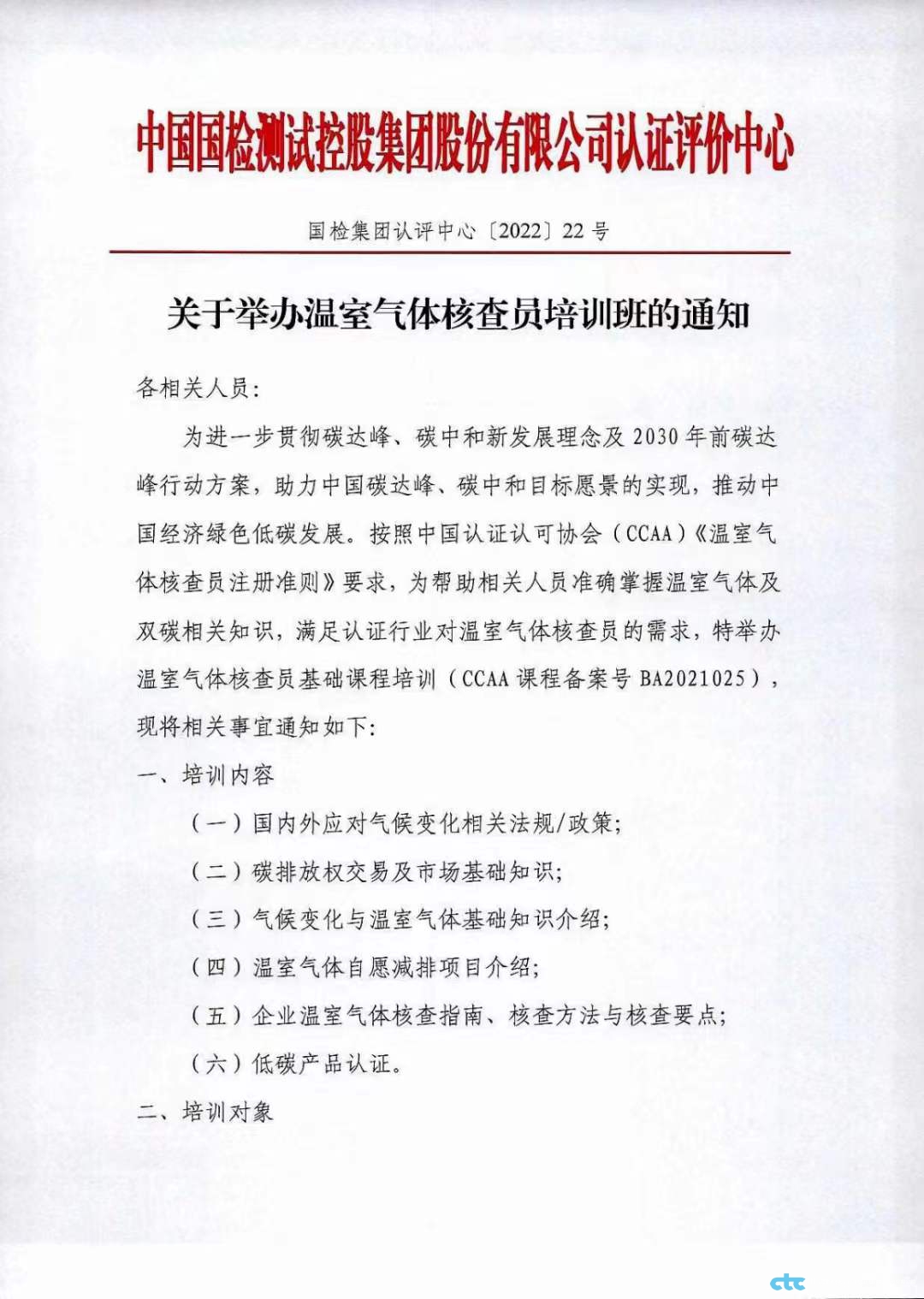 關(guān)于舉辦溫室氣體核查員培訓(xùn)班的通知