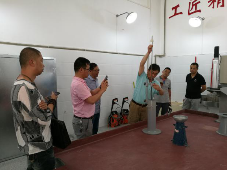 2017年8月8日,六盤水市混凝土協(xié)會秘書長林勇與會員企業(yè)負責人、貴陽市預拌混凝土協(xié)會秘書長劉光先一同到貴州公司參觀交流。貴州公司技術總顧問帥頌憲帶領大家參觀了高性能混凝土實驗室以及配套設施,并做現(xiàn)場講解。